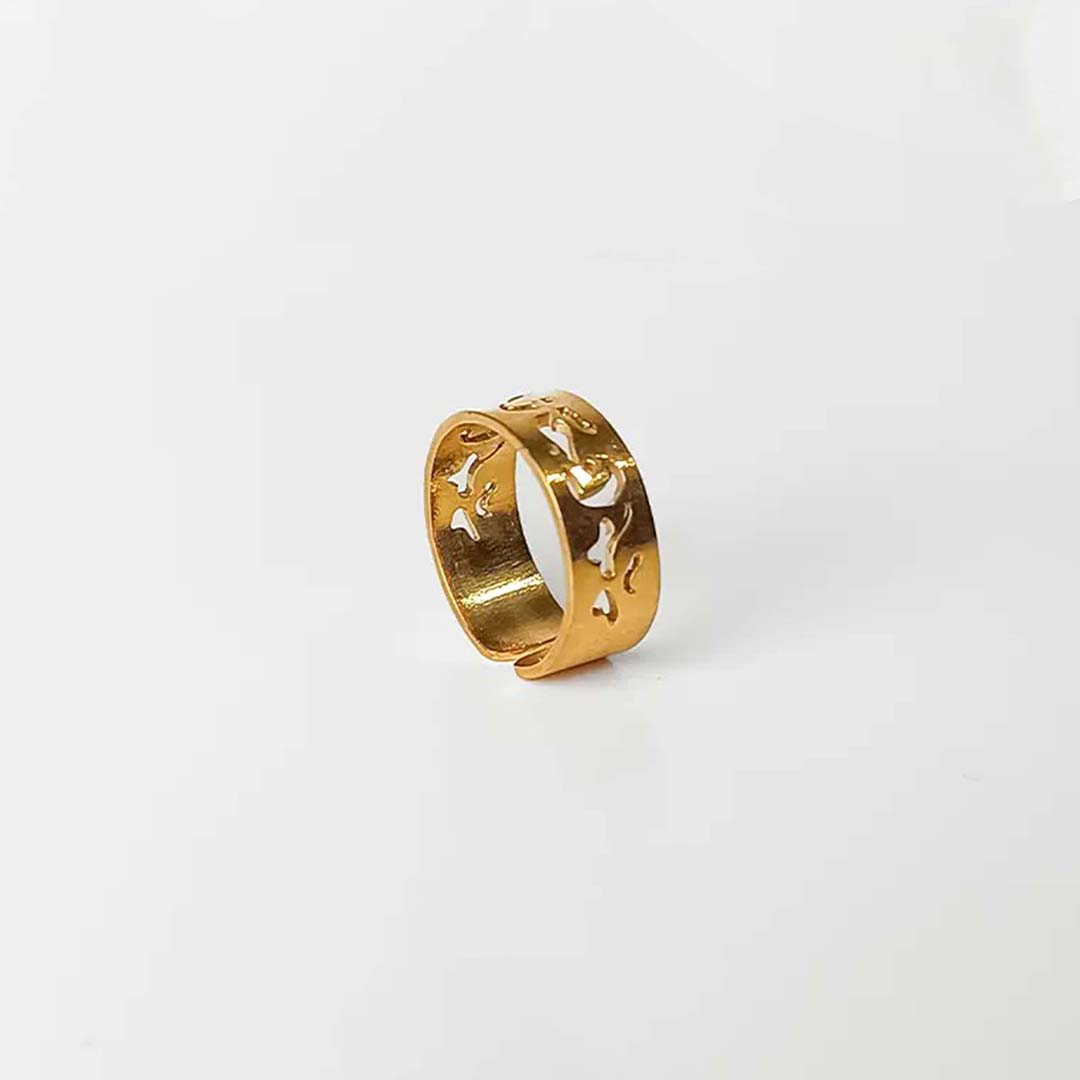 Apportez une touche d’élégance à votre style avec cette bague en cuivre plaqué or au design arabesque ajouré.